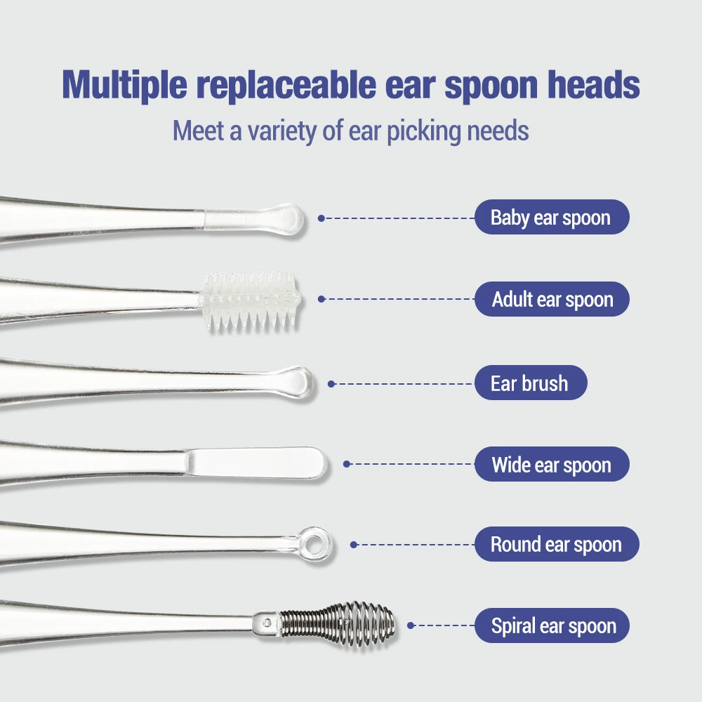 3.Equipped with 6 different types of ear pick tips, our light-up ear picks are suitable for both adults and babies, meeting a variety of ear picking needs.