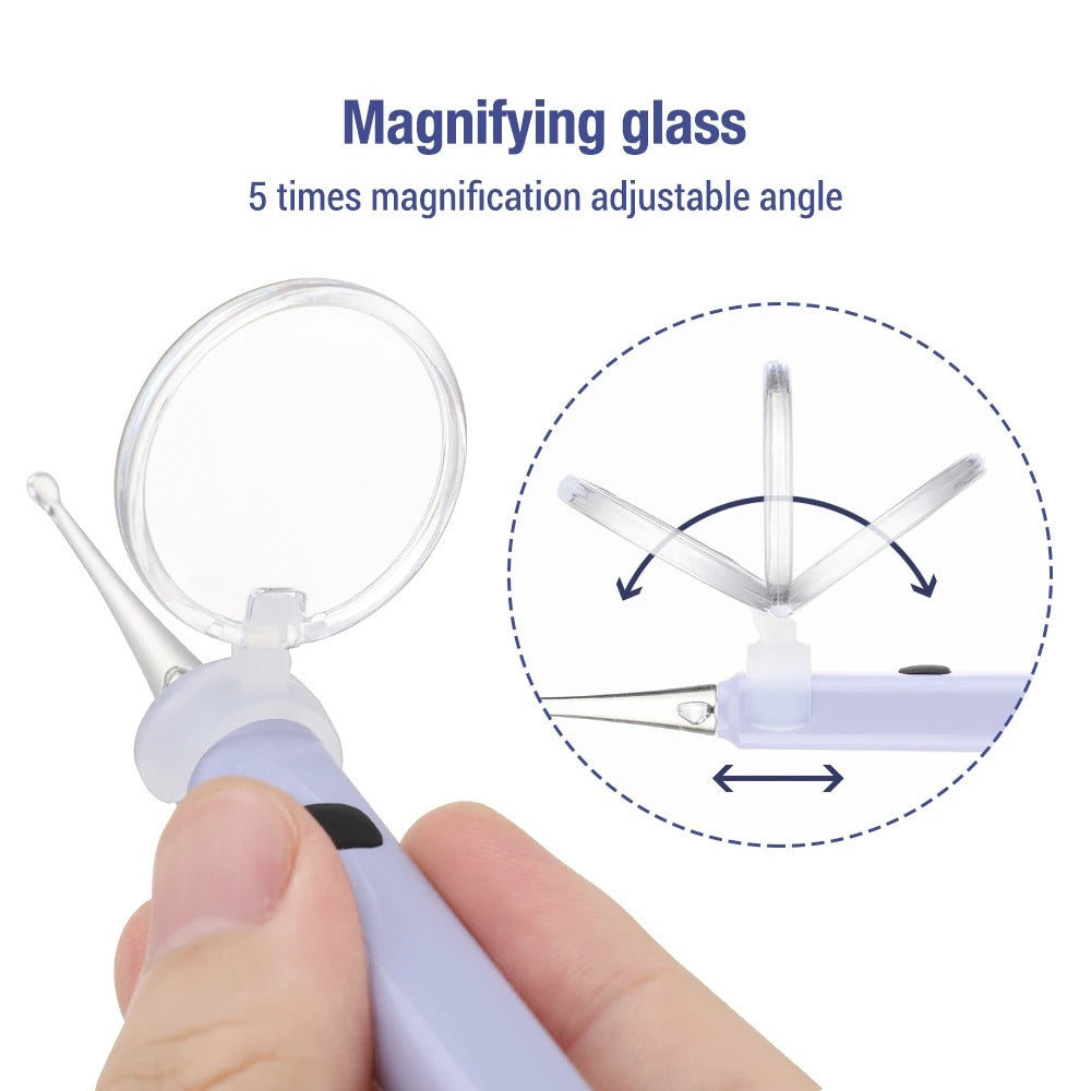 2.The built-in LED light + magnifying glass allow you to clearly see the inside of the ear canal and pick the ear without hurting the ear.